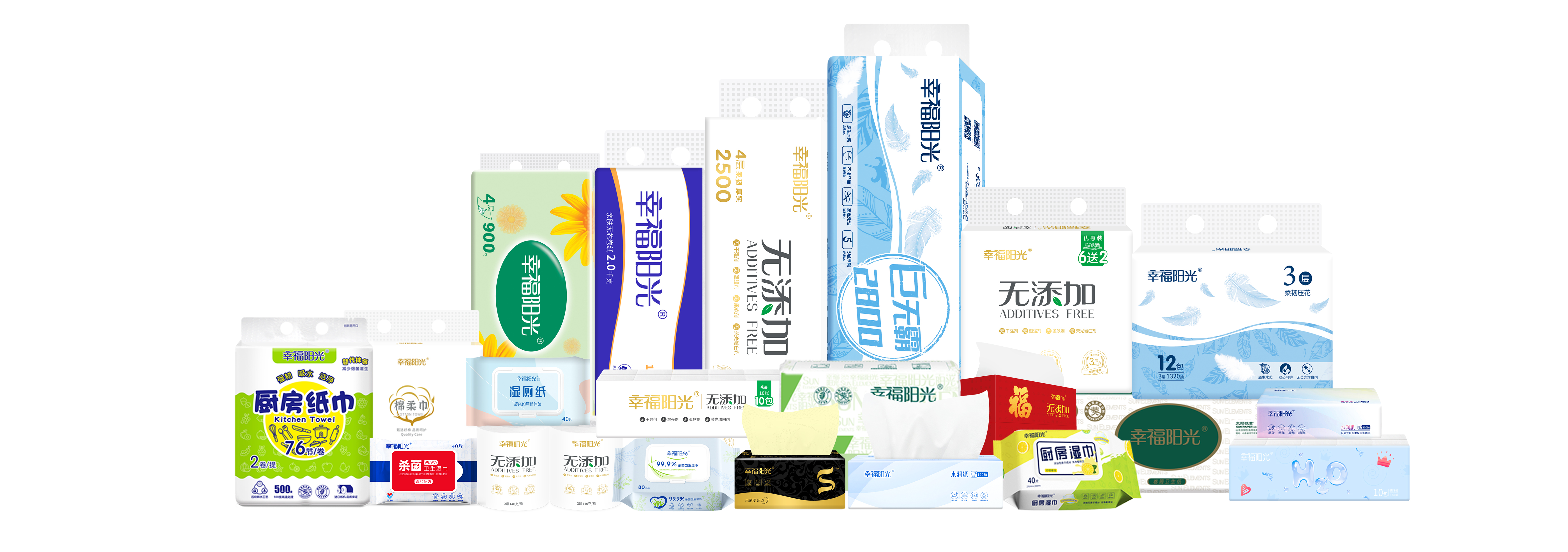 精心嗬護美好生活,打造抽取式紙麵巾、有芯/無芯卷紙、濕巾、棉柔巾、紙手帕、廚房紙巾、商務紙巾等產(chan) 品係列。