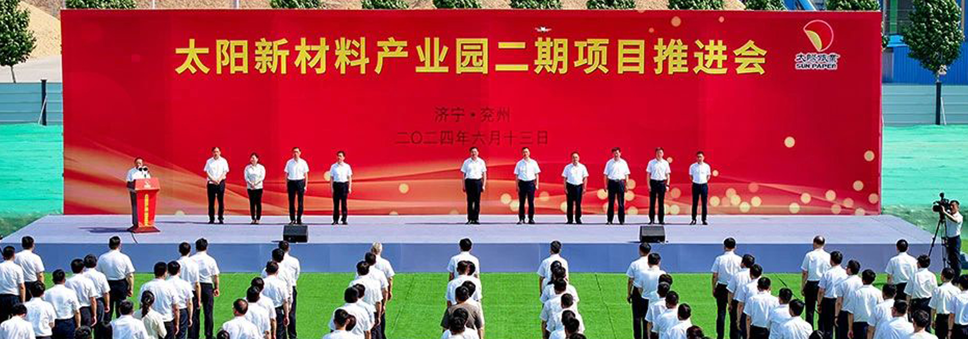6月13日上午,太陽新材料產業園二期項目現場推進會召開。濟寧市委書記林紅玉出席並宣布項目開工,濟寧市委副書記、市長於永生講話,濟寧市人大常委會主任王宏偉出席。公司董事長、總經理李洪信出席並介紹項目情況。濟寧市委常委、秘書長董波主持。濟寧市領導張勝明、謝成海,兗州區委書記王慶,區委副書記、區長王營出席。李洪信首先向濟寧市委、市政府對2026年世界杯观看的大力支持表示衷心的感謝。他表示,市區兩級黨委、政府“大抓產